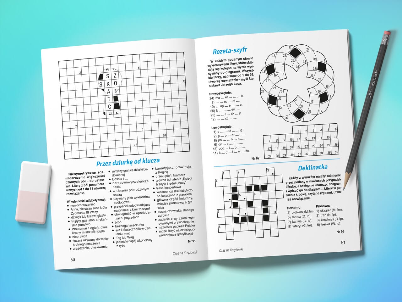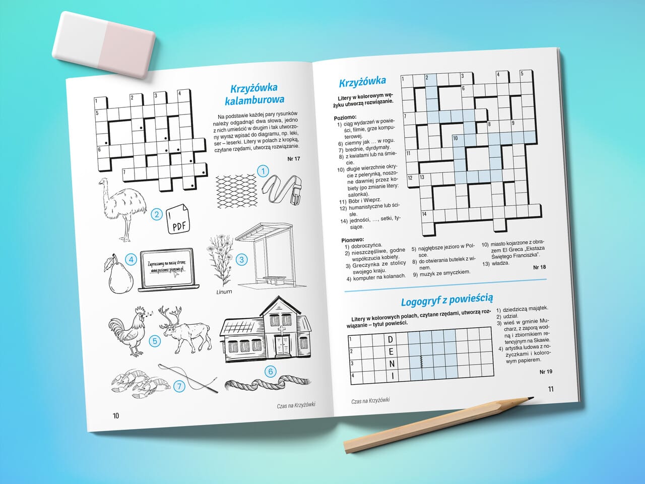 Dla Czytelników, którzy cenią sobie bardziej wyrafinowane typy krzyżówek, również mamy małe co nieco. Zadania takie jak deklinatka, przez dziurkę od klucza, ukryta krzyżówka, od słowa do słowa, liczbówka czy zebra to odrobinę większe wyzwania, ale za to jaka satysfakcja z rozwiązania!