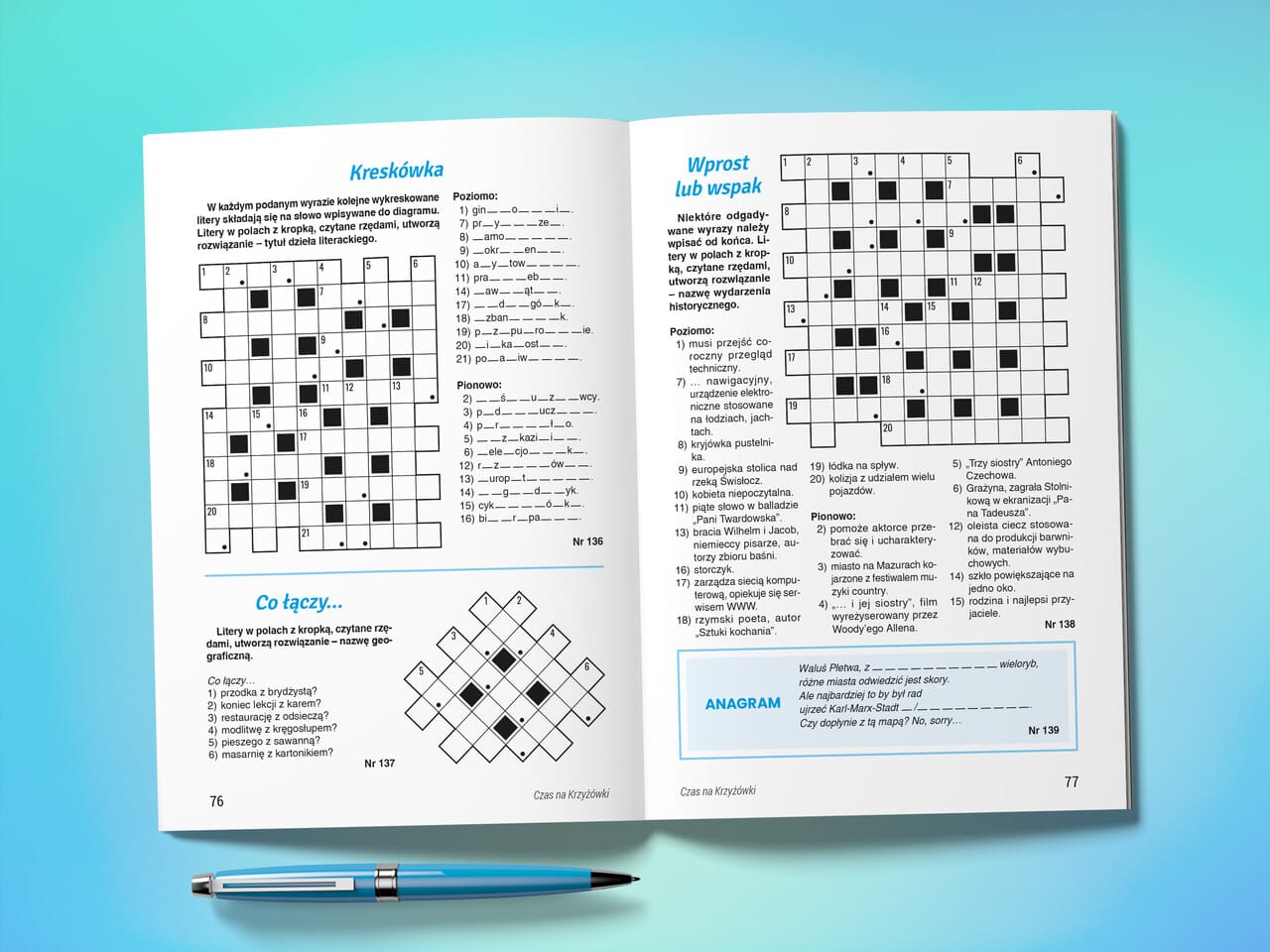 Jeśli masz poczucie humoru i lubisz pośmiać się podczas rozwiązywania, to świetnie się składa! W każdym numerze naszego dwumiesięcznika czekają na Ciebie niebanalne krzyżówki z przymrużeniem oka, których rozwiązywanie sprawia mnóstwo frajdy i wprowadza w doskonały nastrój!