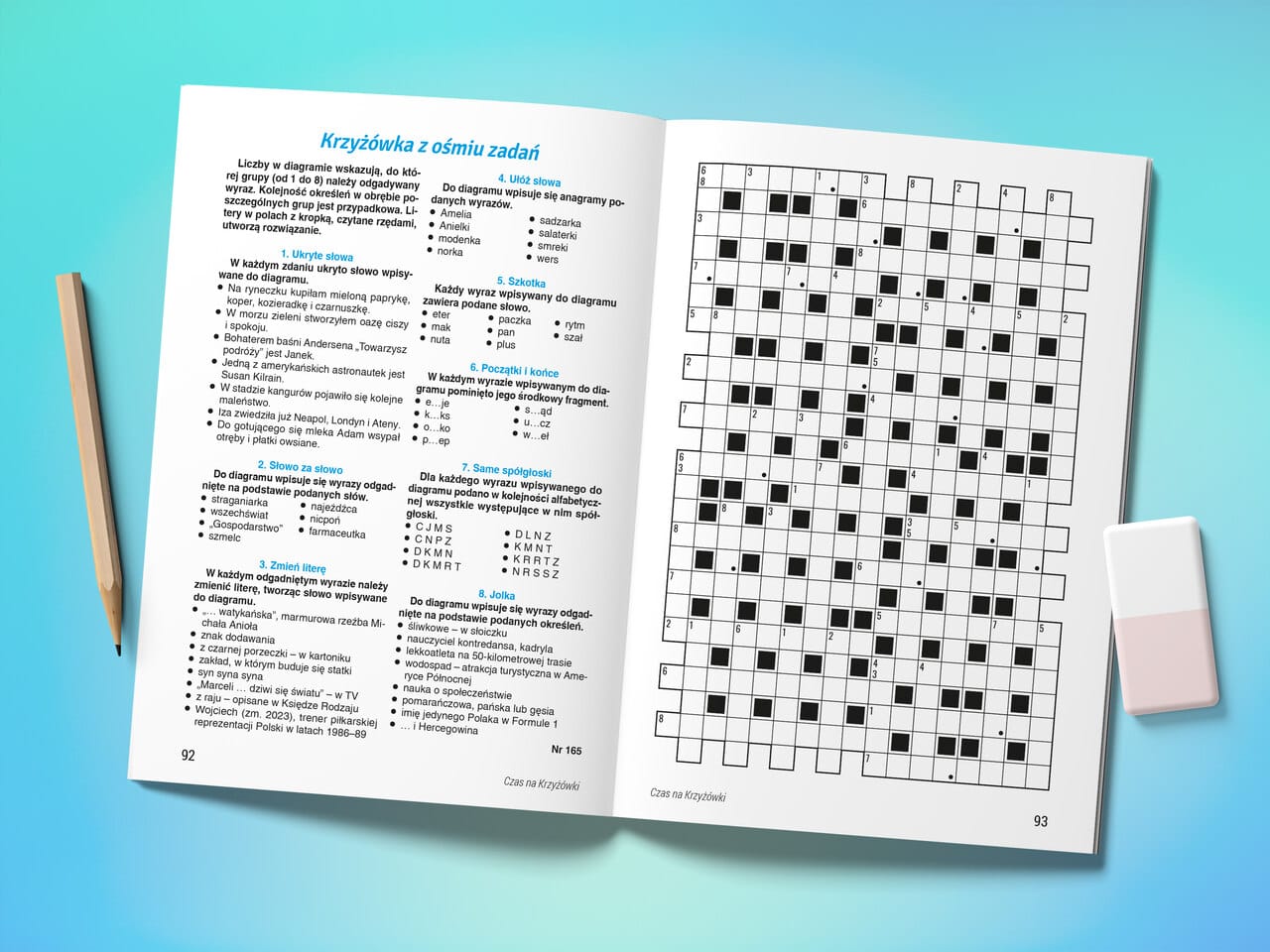 Na samym końcu numeru czeka wyzwanie, którego nie znajdziecie nigdzie indziej – dwustronicowa krzyżówka składająca się aż z ośmiu zadań! To bardzo wciągające i przyjemne zadanie, w którym do rozwiązania dociera się metodą małych kroczków. Wypatrujcie go w kolejnych numerach Czasu na Krzyżówki!